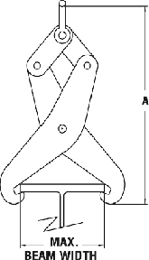 | Model Number | Rated Capacity (tons) | Beam Width Min. - Max. (in.) | Flange Thickness Max. (in.) | A (in.) | Weight (lbs.) |