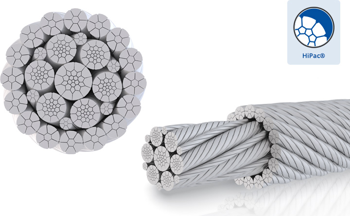 Câble d’acier compact et flexible HiPac avec des charges de rupture plus élevées que le câble standard 35×7. Sa grande stabilité latérale le rend parfaitement adapté à l’enroulement sur des tambours multicouches. Grâce à sa construction sophistiquée, Dynamiq présente également des propriétés antigiratoires de pointe. Dynamiq est le meilleur choix comme câble de levage principal et auxiliaire pour les grues sur chenilles et tous les types de grues à tour qui nécessitent un câble antigiratoire à haute résistance. Les propriétés antigiratoires supérieures font de ce câble un excellent choix pour toutes les utilisations simples ou multi-lignes de levage.