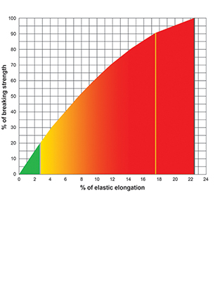 The coloured area under the curve represents the rope’s energy absorption capability.