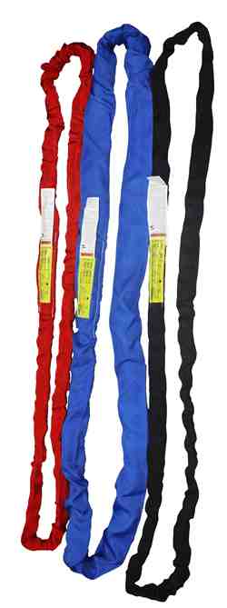UPD slings are made in capacities up to 70,000 lbs. vertical. These Roundslings conform to ASME B30.9 Chapter six and Cordage Institute Standard CI 1905. They have a double Polyester outer cover made from the same colour (inner and outer cover colour are the same) The core yarn is also polyester. These slings are colour coded to depict a certain sling capacity. However, be aware that the colour code of Roundslings is NOT governed by ASME B30.9. Never select a sling by it’s colour. Always read the tag information. |