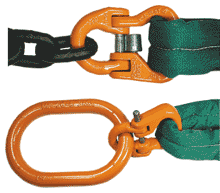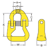 | Grade 80, forged alloy steel, heat trated. WLL shown is for the connector when used with a synthetic sling. DF 5:1 |