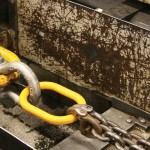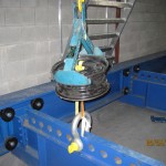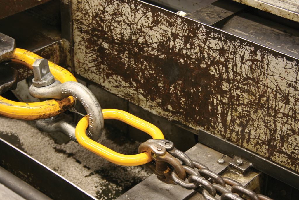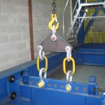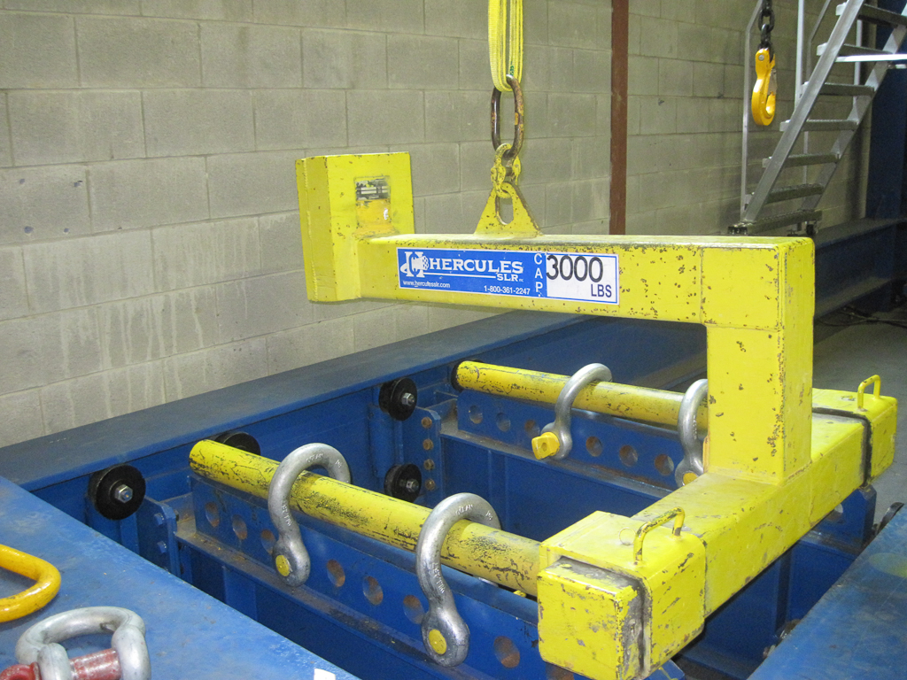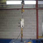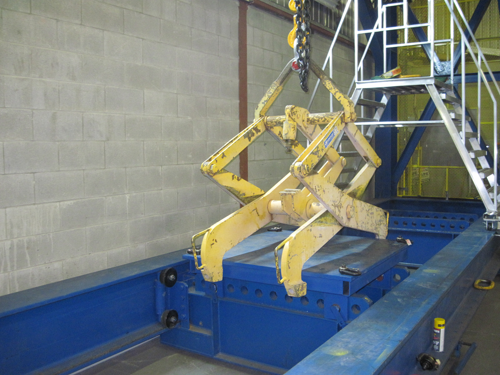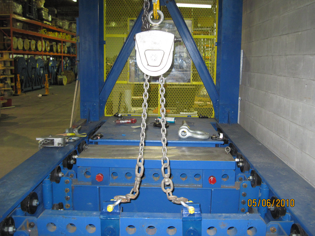 This test bed has special attachments to proof test wire rope slings, synthetic flat web slings up to 12” width (e.g. boat lifting slings), all types of chain slings, round slings, high performance fiber slings, and rigging hardware.
